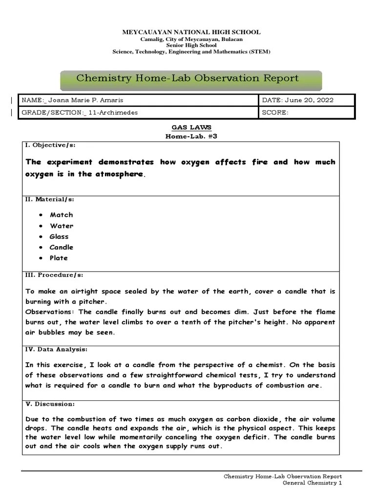 Chemistry Laboratory Report Template PDF Oxygen Atmosphere Of Earth